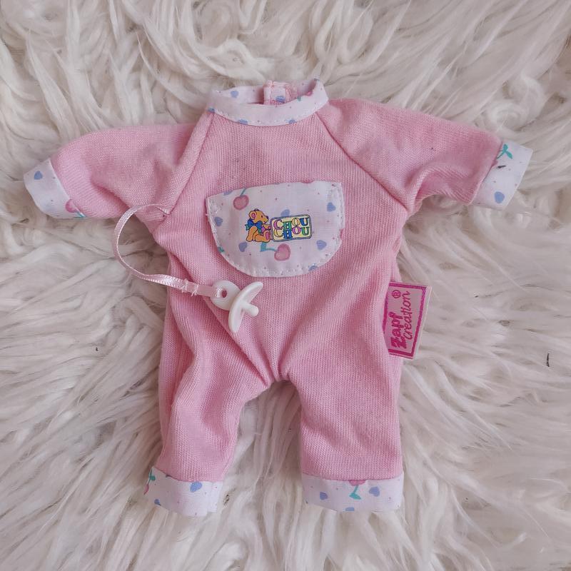 Комбінезончик zapf creation для невеликого пупса mini chou chou, довжина комбінезончика 14.5 см, стан дуже хороший, соска прикріплена, в комплекті. 120 гр