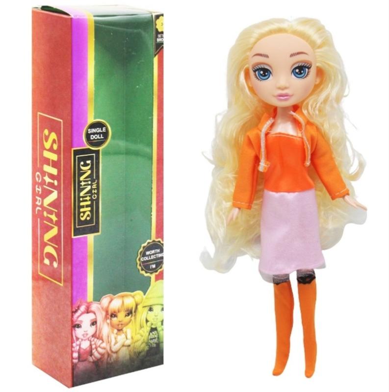 Яскрава лялька стане чудовим подарунком дитині. Висота іграшки 24 см. Одягнена у красивий модний костюм. У іграшки яскраве довге волосся. У ляльки рухливі ноги та руки. Виконана із якісних матеріалів. Для дітей віком від 3-х років.