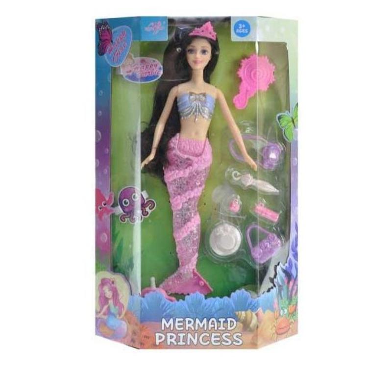 Оригинальная кукла русалка станет отличным подарком ребенку. Игрушка имеет красивый хвост русалки, который светится. Также кукла имеет звуковые эффекты (поет песни на английском языке). В наборе с куклой: расческа, сумочка, шляпа, фотоаппарат. Выполнена из качественных материалов. Высота игрушки 34 см. Для детей от 3-х лет.