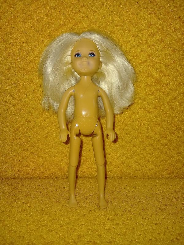 Оригинальная кукла Челси •усы шарниры работают •слойниры находятся в шее, руках, бедрах, коленях •громкие белые волосы, без залысин •единственный минус это каблук куклы