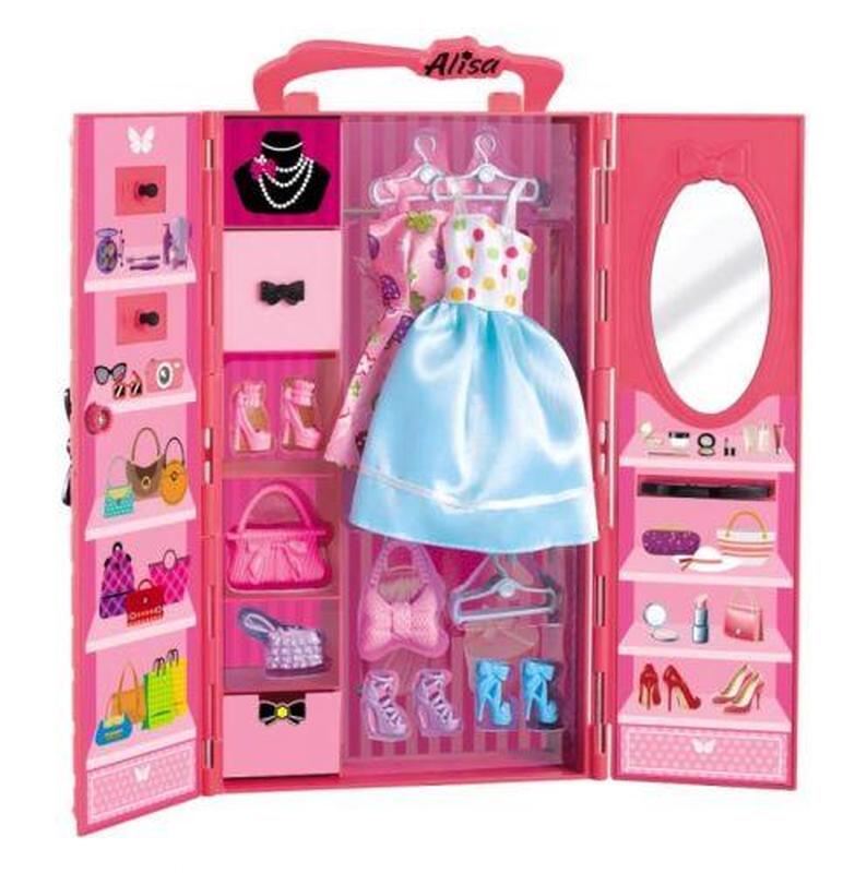 Мебель для кукол будет хорошим подарком для ребёнка. Представляет собой шкаф с полочками и зеркалом. В наборе, так же, есть 2 платья для куклы, 3 пары туфель, 3 сумочки, 6 тремпелей. Размер шкафа - 18,5х7х31 см. Для детей от 3-х лет.