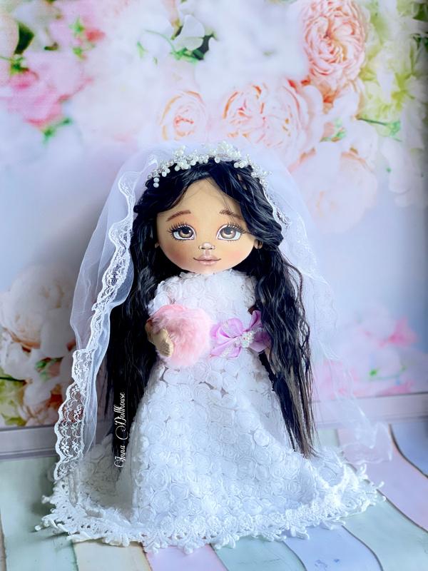 Авторська лялька.Створена з хлопкової тканини.Має зріст 28 сантиметрів.Рухлива,одяг змінний. суха чистка.