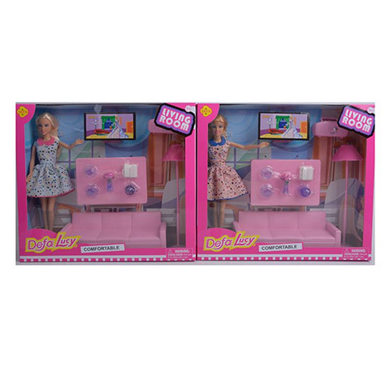 Кукла defa, гостинная, диван, посуда, 2 вида, 8437-bf