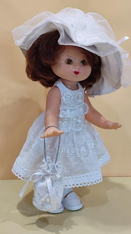 лялька випуску часів СРСР. Пройшла маленьку реставрацію, дуже в гарній формі, голова і ручки з м'якого матеріалу в тулуб з пластмасу, має купу речей на всі пори року і до них три пари взуття , зріст 30см.