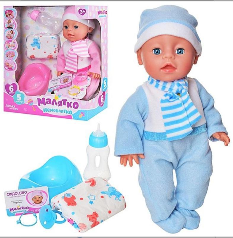 Виробник: Baby Born Стать: Унісекс Вік: 3 роки Матеріал: Інший матеріал Тип іграшки: Пупси Матеріал: Інший матеріал Кілька примірників у наявності Функції: відкриває/ закриває очі, п'є є/ пісяє. В комплект входить: горщик, пляшечка, соска, памперс, картка