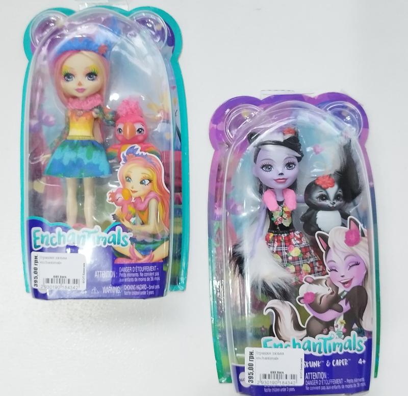 Кукла enchantimals с любимцами: попугайчиком и скунсиком