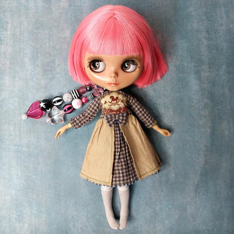 Платье для куклы Блайз в винтажном стиле. Коллекция Baby world. Платье сшито из японского хлопка и винтажного плотного хлопка ручного окрашивания. Платье на подкладе из батиста. В качестве украшения использована аппликация и небольшой бант. Платье легко одевается и снимается для комфортной игры с вашей куклой.