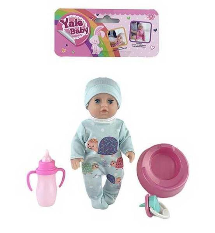 Пупс (17 см ), п'є воду і пісяє, руки, ноги, голова (гумові), тулуб (пластмас) 2 кольори Горщик Пляшечка Соска Упаковка в пакеті - 23×17 см Китай
