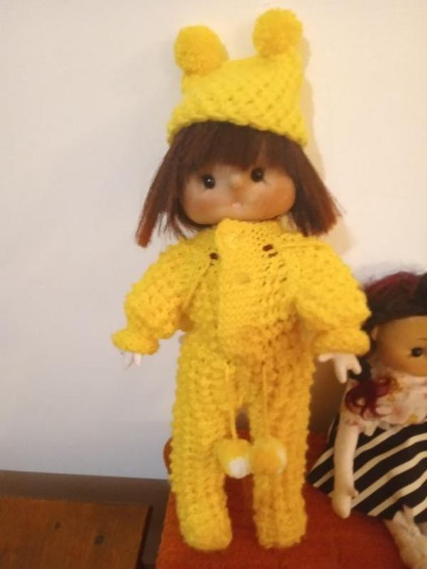 Кукла ручной работы,в ярком вязаном комбинезончике.Новая.Ручки и ножки двигаются,можно одевать и раздевать,волосики расчесываются.Второй такой нет. Отличный подарок для ребенка.