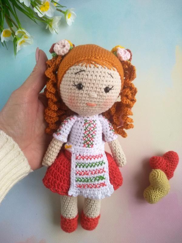 Кукла Украинка из хлопковой пряжи.Вышивка одежды ,моя авторская нитками.Рост 24см.Врлосы украшены цветами.Игрушка на подарок.А для тех,кто за границей -часть Украины.