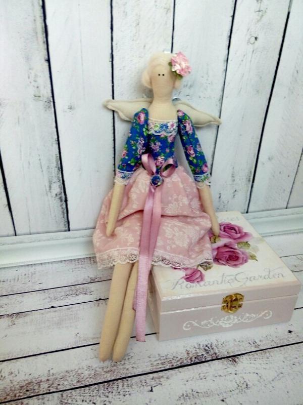Текстильна лялька ручної роботи у стилі Тільда. Лялька висотою 40см,має петельку для підвішування. Ручки і ніжки вільно бовтаються. Лялька зшита з натуральних тканин,наповнювач синтепух.