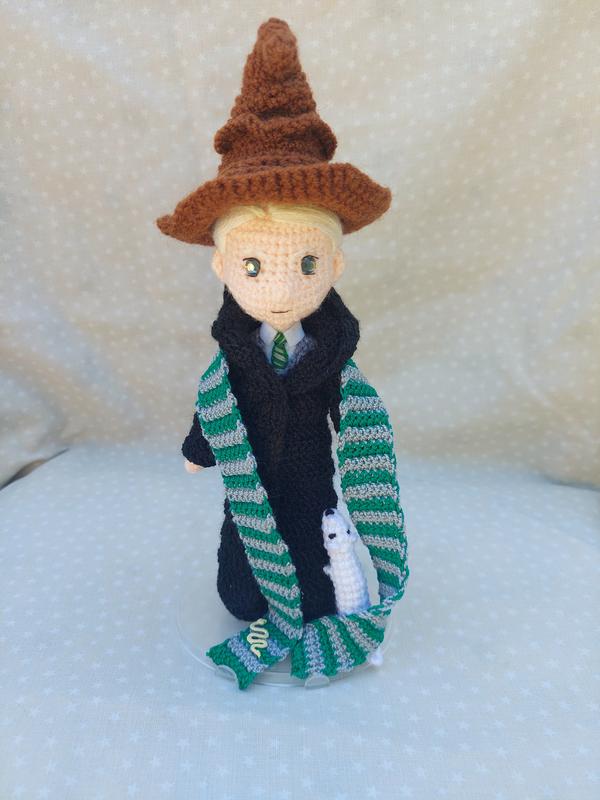 Фігурка Драко Малфоя виконана крючком Высота 18см, в комплект входить підставка та розподільний капелюх)