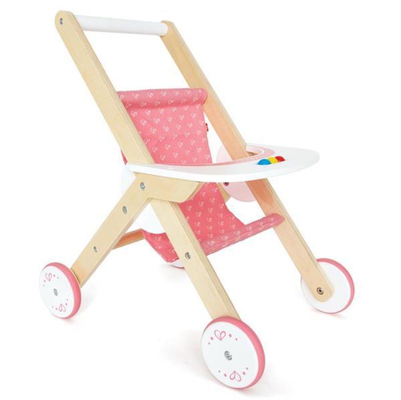 Іграшкова коляска Hape порадує дівчаток від 3 років і дозволить розігрувати цікаві сюжети з улюбленою лялькою. Діти возитимуть ляльок на прогулянки по дому чи двору. У коляски є столик із прикріпленим брязкальцем у вигляді трьох кольорових кульок. Колеса прогумовані для захисту підлоги та тихої їзди. Коляска для ляльок виконана в рожево-білих тонах із дерева, пластику та тканини. Іграшкова коляска Hape зроблена з якісної деревини, пофарбована безпечними фарбами. Усі краї ретельно відшліфовані та згладжені. Конструкція коляски міцна, що гарантує довговічність іграшки. Розміри зібраної коляски: 45 х 33 х 51 см. Підійде для ляльок заввишки до 41 см. Іграшкова коляска Hape доповнить рольові ігри з ляльками, під час яких дівчатка розвивають уяву, емоційний інтелект, навчаються піклуватися про інших.