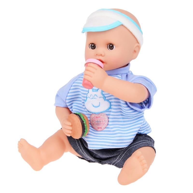 Ця лялька - мініатюрна версія справжнього малюка, подивившись на якого дівчинка більше не захоче з ним розлучатися. Ця мила лялька ароматизована одягнена в рожеву футболку, чорні шортики, на голові кепка. Ця лялька любить смачно поїсти, в одній руці у неї стаканчик з газованою водою, а в інший гамбургер. Також лялька хороша тим, що має приємний запах, який не викликає алергічних реакцій у дітей. Лялька працює за допомогою батарейок. Якщо натиснути на кнопочку розташовану посередині животика, то лялька починає мило посміхатися, також вона рухає ручками, в яких є продукти. Таким чином, спочатку лялька їсть гамбургер, а потім запиває його газованою водою. Дитині буде цікаво спостерігати за роботою ляльки, вона почне стежити за кожним рухом тіла іграшки. Завдяки розвиненій фантазії вашої крихітки, вона зможе придумати стільки сюжетів для своєї гри. Наприклад, зможе ходити на прогулянки з лялькою, грати в різні ігри, лікувати, виховувати, укладати спати. Купивши таку ароматизовану ляльку своєму малюкові, ви не пошкодуєте про придбання, а малятко буде задоволене і вдячне вам. Лялька виготовлена з екологічно чистої гуми, нешкідливої для здоров'я вашої крихітки. Рекомендується для гри дітям від 3 років. Тип живлення: AA-2шт