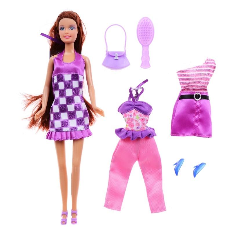 Якщо ви не знаєте, що подарувати або якою іграшкою здивувати свою дитину? Тоді лялька з набором одягу та різних аксесуарів підійде для подарунка на будь-яке свято. З такою лялькою можна придумати стільки сюжетів цікавих ігор, наприклад, влаштовувати модні перевдягання, наряджати ляльку на всілякі вечірки і заходи, їй можна шити одяг, облаштувати для неї особисту кімнату або куточок, робити різні зачіски. У наборі є модна сумочка, взуття, сукні і комбінезон. З такими складовими лялька вашої крихітки буде завжди виглядати чарівно і впевненою в собі. Під час гри у вашої малятка розвивається фантазія, уява, логічне мислення, дитина вчиться пізнавати цей світ в нових фарбах і деталях. Лялька виготовлена з екологічно чистого пластику, нешкідливого для здоров'я дітвори. Рекомендується для гри дітям від 3 років. У комплект входять: лялька – 1 шт; сумочка – 1 шт; сукня – 1 шт; комбінезон – 1 шт; гребінець – 1 шт; туфлі – 1пара.