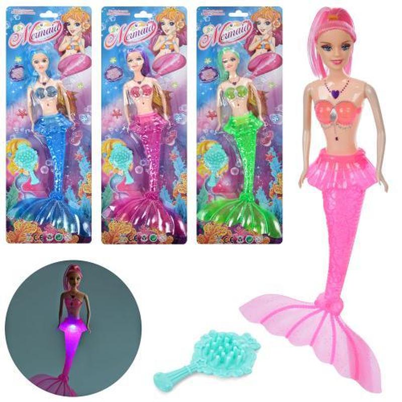 Лялька "Русалка", 32 см, 4 кольори. Є світлові ефекти. Живлення - батарейка типу таблетка. Матеріал - комбінований. Паковання — лист. Розмір - 15х4х42 см.