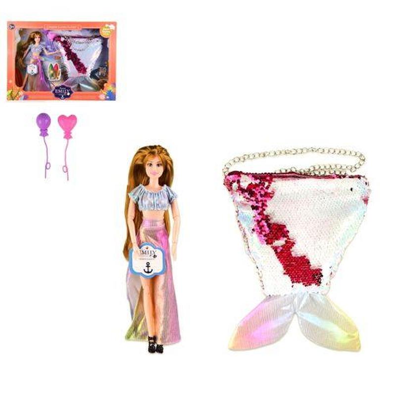 Ігровий набір "Emily" з лялькою і дитячої сумочкою. У ляльки рухливі руки і ноги (з шарнірами). Сумочка ф формі хвоста русалки. Прикрашена блискучими паєтками. Висота ляльки - 30 см., Розмір сумочки - 26х20 см. Виконаний набір з якісних і безпечних матеріалів. Для дітей від 3-х років. Паковання: Коробка Колір: Різнокольоровий Вага з упаковкою: 478 г Габарити в упаковці: 46 x 34.5 x 6.5 см Країна виробник: Китай Матеріал: Комбінований Комплектація: Лялька, сумочка
