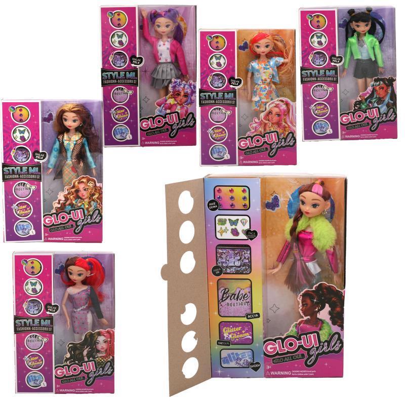 Лялька шарнірна, 27 см, 6 видів. Аксесуари. наліпки в наборі. Матеріал - комбінований. Паковання — коробка. Розмір - 20х4,5х30 см.