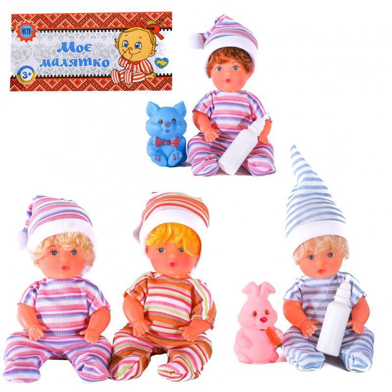 Лялька "Моє малятко", в асортименті. Комплектація - пупс, пляшечка, іграшка-тваринка. Паковання — пакет. Розмір - 11,5х4х24 см.