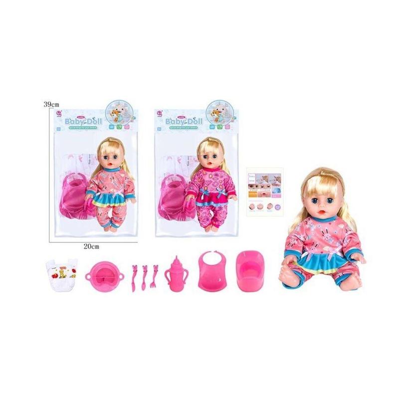 Особенности:- кукла с отличной детализацией;- одетая в съемную одежду;- закрывает глаза;- пьет из бутылочки;- ходит на горшок;- музыкальный чип, благодаря которому кукла воспроизведение "Мама", "Папа" и издает характерные звуки;- тело куклы выполнено из пластика, а голова – из плотной резины;- высота – 30 см.Комплектация:- кукла;- бутылочка;- нагрудник;- горшок;- набор посуды;- подгузник.