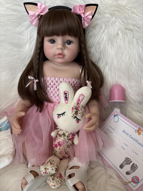 Вініл-силіконова лялька Реборн з довгим волоссям. Лялечка 55 см із довгим волоссям і повністю силіконовим тельцем. Одягнена в гарну сукню, а також взута в стильні босоніжки. Вона стане ідеальним подаруночком для Ваших дівчат, а також тих, хто колекціонує гарних ляльок. Наші лялечки — це ляльки преміумкласу, які виготовлені з високоякісного вінілу— силікону. Одразу відмітьте рожеві цятки на тілі, гарні складочки, що передають усю схожість зі справжніми немовлятами. Реборни мають накладні та дуже гарні вії,волосся-паричок. Волосики вимагають догляду, легко розчісуються, дуже приємні на дотик, їх можна мити та експериментувати з зачісками. У всіх ляльок акрилові очі. Також реборни можуть ворушити ніжками та ручками, а голова повертатися з боку в бік. З лялькою можна грати в "Дочки матері", катати її у візочку, укладати спати в ліжечко та баюкати, дуже весело проходить купання з ляльками, вони можуть добре сидіти у ванній, міцно тримаються й не падають, дітки будуть у захваті від такої гри. Також лялечку реборна можна брати із собою на прогулянки, можна годувати її з пляшечки та годувати з ложечки, а також одягати в гарний одяг, що дуже люблять дітки. У комплекті в кожної ляльки є мʼяка іграшка , як на фото, сосочка на магніті, пляшечка, з гумовою соскою, все як у справжнього новонародженого, а також сертифікат і свідоцтво про народження. Така лялька буде найкращим другом для Вашої дитини. Діти, граючи з лялькою, дотримуються дій дорослих: вони також купають ляльку, як їх купають батьки, також і одягають. Отже, діти відпрацьовують найпростіші життєві навички. Ще дитина проговорює дії за ляльку, також гра з лялькою задовольняє пізнавальну активність дитини. Розглядаючи ляльку, дитина досліджує і себе, формує уявлення про своє тіло, у ляльок реборн добре представлені гендерні ознаки. Також дитина зможе навчитися піклуватися й жалю, буде піклуватися про молодших. Догляд за цією лялечкою дуже простий, вона легко протирається вологими серветками, мокрою ганчірочкою, або ж її можна помити. Пишіть, дуже швидка відправка