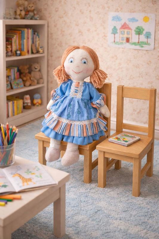Декоративна лялька стане чудовим подарунком для дівчаток будь-якого віку. Вона не просто іграшка, вірний друг який завжди поруч. Лялька з тканини дарує затишок та радість. З м'яким, пухнастим волоссям з акрилових ниток ляльку ідеально легко обіймати, а її розмір – 37 см – підійде для маленьких ручок. Одяг ляльки пришитий, тому під час гри нічого не втрачається. Виконана з натуральної бавовняної тканини, лялька приємна на ранок та безпечна для малюків. Її обличчя акуратно розставлене акриловими фарбами, дозволяючи кожній ляльці унікальний вираз, повний доброти та ніжності.