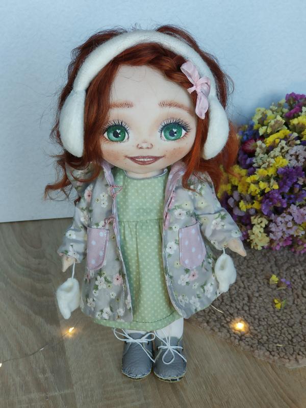 лялька з тканини, ручна робота, обличчя розмальоване акриловими фарбами , суха пастель, закріплене фіксативом. волосся з натуральної шерсті кози. розмір близько 30см.