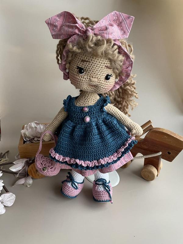Лялька гачком Зріст 37см Пряжа 55% бавовна, 45% акрил. Наповнена холофайбером. Одяг знімається. Кожна лялечка індивідуальна і єдина у своєму виконанні, точна копія неможлива. Очі на безпечному краплении, додатково закріплені.