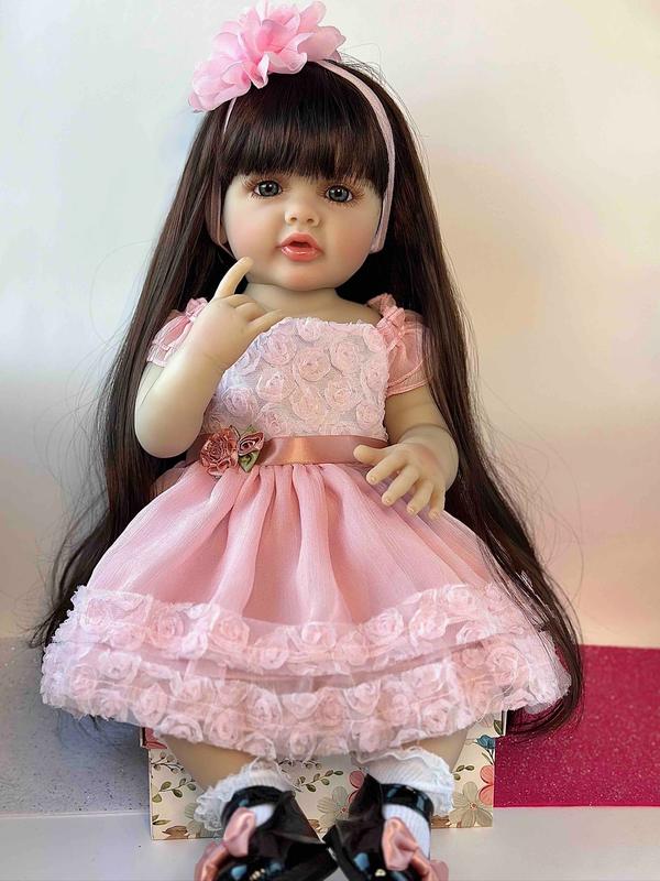 Привет! Я хочу быть твоей подружкой. Выполнена я из высококачественного винил-силикона. Меня можно купать. Я могу сидеть, стоять и лежать. Мне можно делать прически, волосы длинные, приятные на ощупь, как у человека. Мочить волосы мне не рекомендовано, поэтому при купании надевайте мне защитную шапочку. Мой рост 55 см. Я одета в розовое кружевное платье. Также, свои ножки обуты в белые туфельки с бантиками. На голове у меня розовые заколки-цветочки. Имею с собой магнитную пустышку, бутылочку, памперс 🩷✨ Я жду тебя.☺️