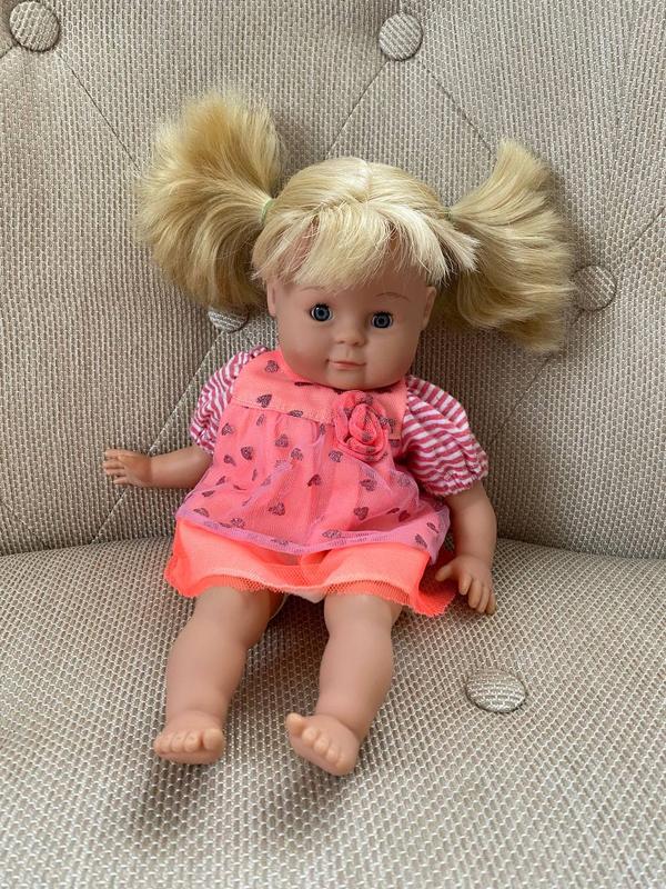 Очень милая ночечная кукла черепашка Schildkrot, 35 см. Мягко-набивное тело. Голова, руки и ноги из винила. Глаза спящие синхронные. Волосы отличное. Есть нюанс на платьях и ножках - последние две фото.