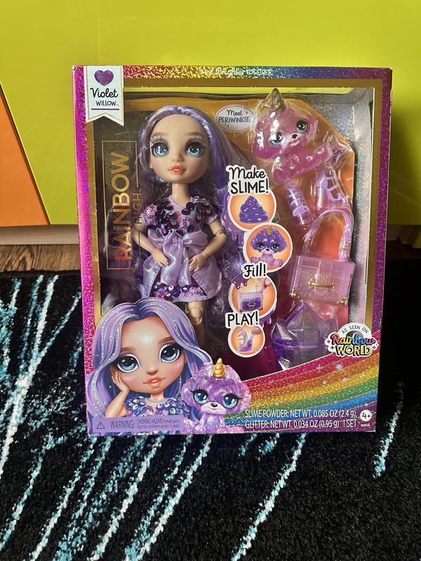 Лялька Рейнбоу Хай Вайолет Віллоу зі слаймом серії Classic Rainbow High Violet Willow with Slime Kit Pet відкривайте та грайте з улюбленими ляльками Rainbow High у новий чарівний спосіб. Кожна лялька постачається зі спеціальним домашнім улюбленцем, модою, що налаштовується, і комплектом Sparkle Slime. Violet Willow постачається з усім необхідним, щоб зробити власний блискучий слайм, включаючи слиз і блискучі порошки та кристалічний шейкер для приготування та зберігання слайму. Просто насипте безбарвний слиз і блискучий порошок у кристал, додайте трохи води та струсіть, щоб відкрити мерехтливий фіолетовий слиз! *Щоб зробити найкращий слайм, дотримуйтеся вказівок, які додаються до ляльки.