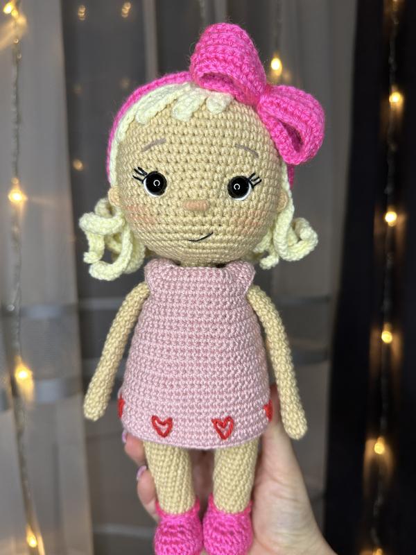Під замовлення! Іграшка вʼязана гачком з напівбавовняної пряжі. Наповнювач гіпоалергенний кулькообразний холлофайбер. Очі пластикові на безпечному кріпленні, волосся вʼязане, плаття не знімається. Розмір 24см. Якщо є питання- пишіть, з радістю відповім 💌