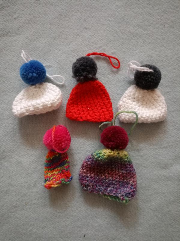 Мини-шапочки с помпонами. Можно вешать на ёлку. Цена за набор
