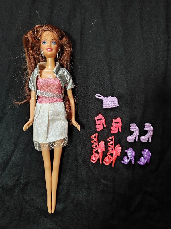 Лялька Ася зі взуттям у комплекті (4 пари взуття та сумка). За додатковими фото пишіть в особисті. З дефектів: не повністю закривається спідниця, на другому фото видно. Стан волосся видно на фото. Ціна 150 грн+23 грн комісія доставки.