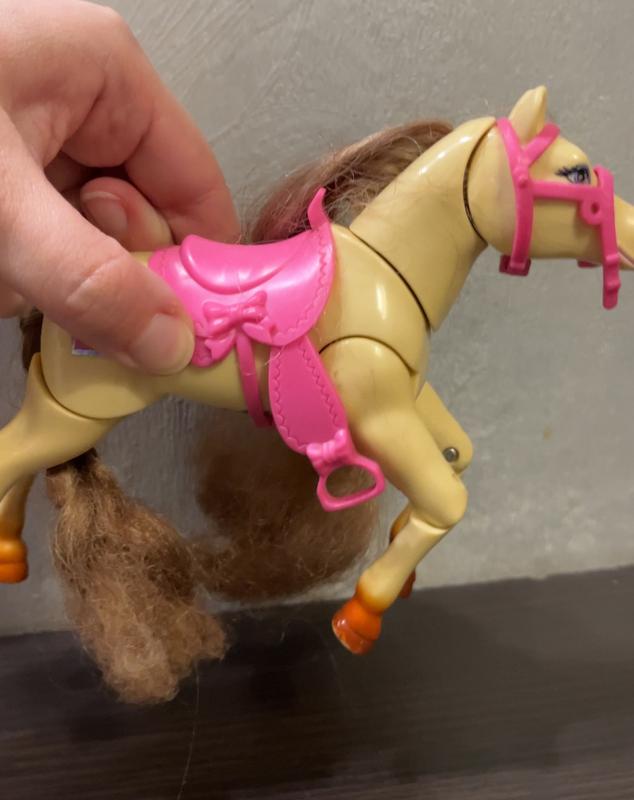 Підійде для великих так і для маленьких барбі. Нажимаєш на кнопку, та поні скаче. Відео є