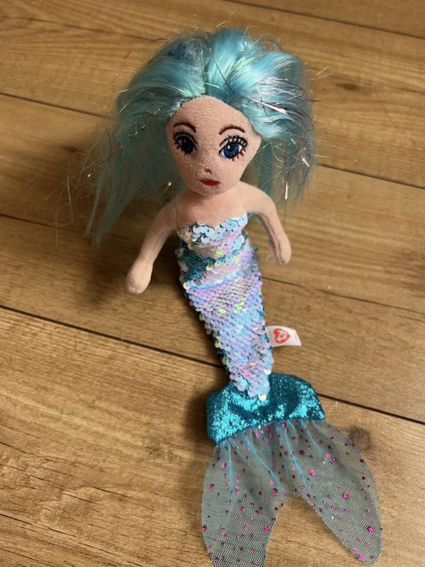 Русалонька TY, має красиве не заплутане волосся і хвіст в паєтках які перевертаються. Довжина 34 см
