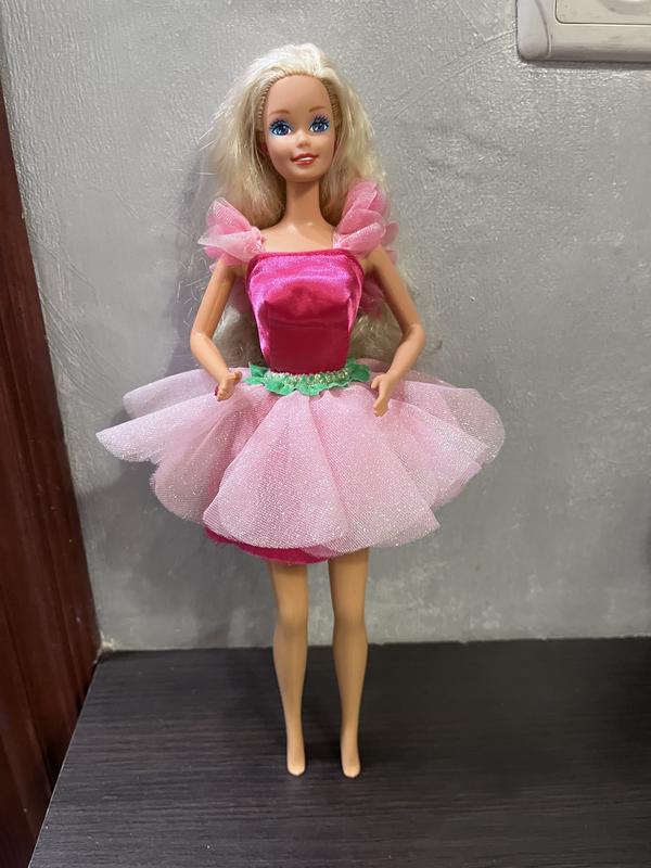 Дивилась про неї інформацію, пишуть що це одна з популярних вінтажних Барбі. Сукня її, прикраси на місці. Дивіться уважно, що на ніжках позаду є дефект. Думаю хто їх реставрує, зможе їх прибрати. Це не пліснява я якісь плями.