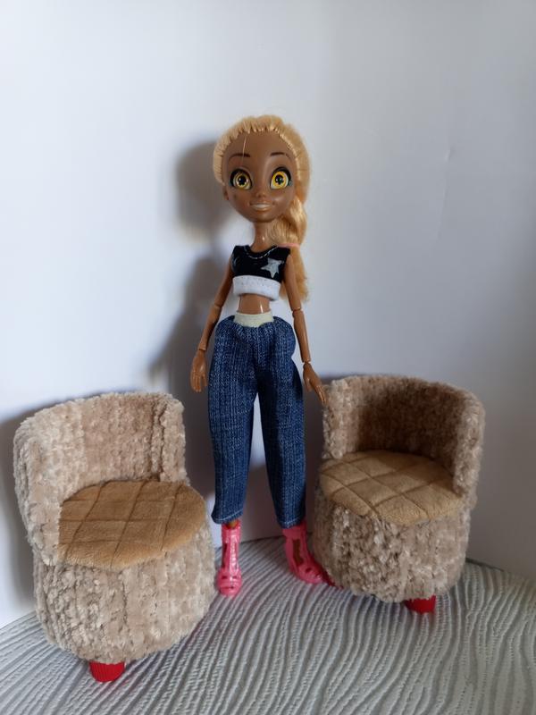 Гарні крісла зроблені донькою власноруч. Міцні, надійні, без небезпечних елементів. Підійдуть діткам Барбі, ЛОЛ, Рейнбоу, Монстринам, Барбі і лялькам подібного плану. Одне крісло коштує 100грн. В наявності будуть інших кольорів також.