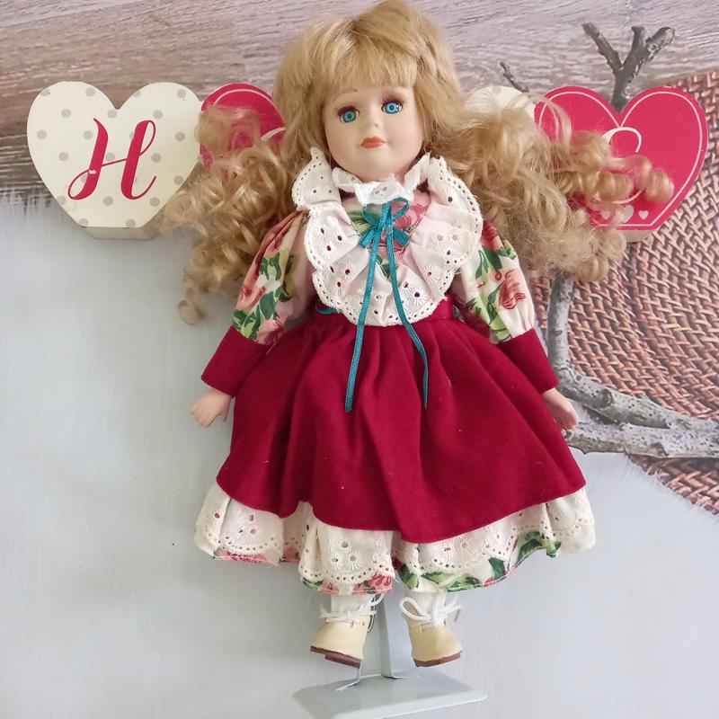 Лялька порцелянова в вінтажному стилі. Має світле кучеряве волосся та світле личко з виразними очима. Одягнена у святковий наряд: оксамитовий бордовий жакет із декоративними гудзиками та мереживним комірцем, довга пишна спідниця у квітковий принт з рожевою стрічкою, а також білі туфельки зі шнурівкою. Дуже гарна та елегантна лялька, прикрасить колекцію або стане оригінальним подарунком. Стан ідеальний Висота 31 см 💗💗💗 пересилаю новою поштою та укрпоштою. є накладений платіж по предоплаті. детальніше про умови читайте в описі в розділі " ПРО МЕНЕ "