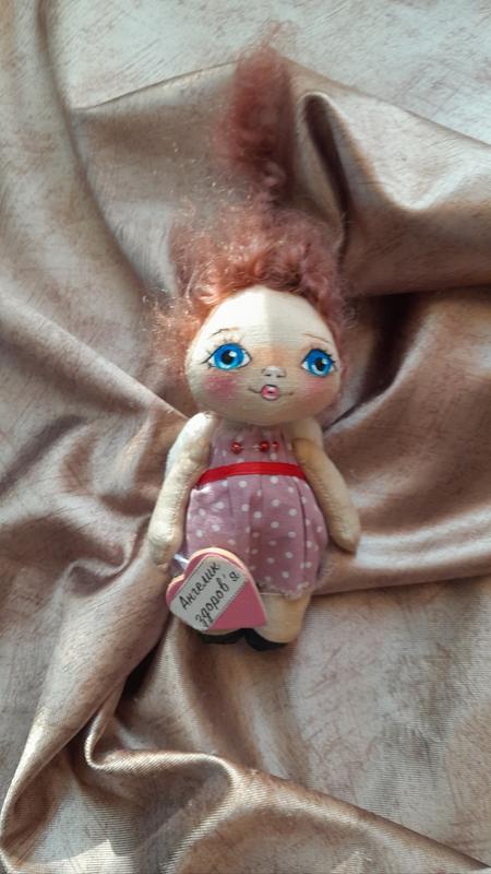 Девочка-ангел с пожеланиями здоровья на текстильном сердечке - Интерьер ерна игрушка ручной работы, которая дарит спокойный и глубокий сон как детям, так и взрослым. Ангелочек может стать отличным подарком на свадьбу, день наращивания или просто приятной неожиданностью для близкого человека. Высота 7 см.