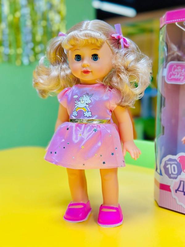Лялька Даринка в рожевій сукні Вміє ходити,говорити і співати пісні Українська озвучка Говорить 10 фраз Музика, звуки Натискай кнопку на грудях ляльки щоб почути фрази, лічилку, та веселу пісню Плесни у долоні і Даринка заговорить Загадає цікаву загадку Упакована в красиву подарункову упаковку Допоможе збільшити словниковий запас Вашої дитини! Це ТОЧНО топ! Працює від батарейок "ААА" 3шт. (не додаються) Розмір: 32см