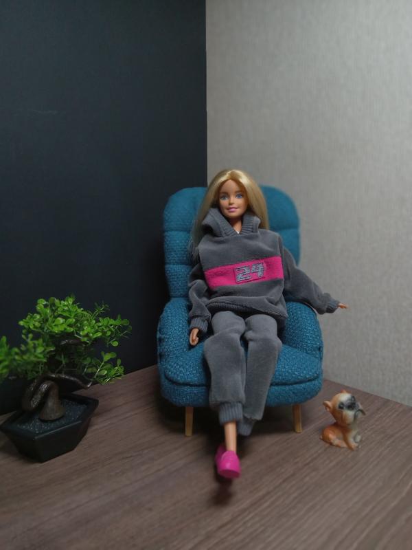 Крiсло для лялечки типу Барбi зроблене вручну з якiсних матерiвлiв . Висота спинки вiд пiдлоги 20 см , з переду висота - 5,5 см , ширина - 13 см , мiсце для сидiння - 10 см на 10 см.
