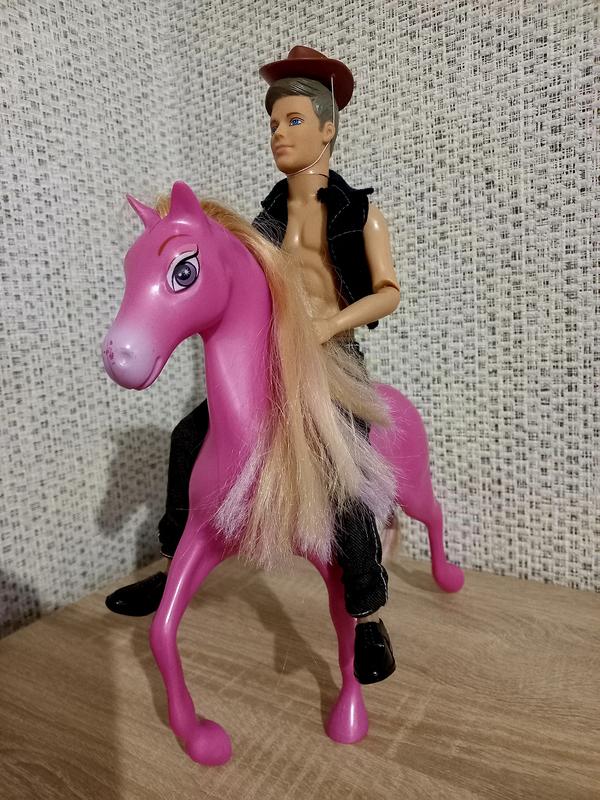 Кен шарнірний в одязі і взутті. Кінь в чудовому стані. Грива і хвіст ніжне волосся.