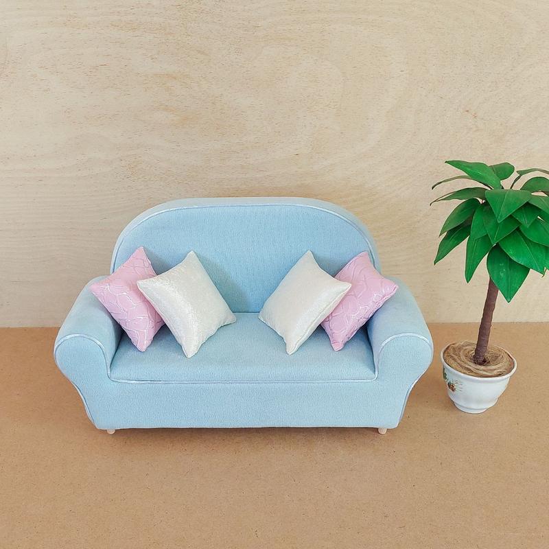 Ляльковий диван повністю виготовлений із ДЕРІВА. Гарний акцент створюють чотири подушки, що входять до комплекту дивана. Диван обтягнутий справжньою портьєрною тканиною. Сидіння і спинка мають усередині м'який поролон. Меблі підійде для Барбі, Монстр Хай, Блайт, Момоко. Розміри: довжина 34 см, ширина 14 см, висота 20 см У мене ще є дивани та крісла для ляльок типу Барбі, а також дивани та крісла для великих ляльок до 45 см