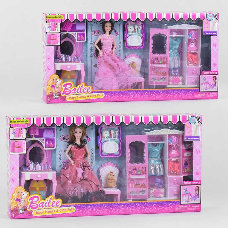 Лялька в стилі барбі з одягом, меблями і собачкою, 2 види
