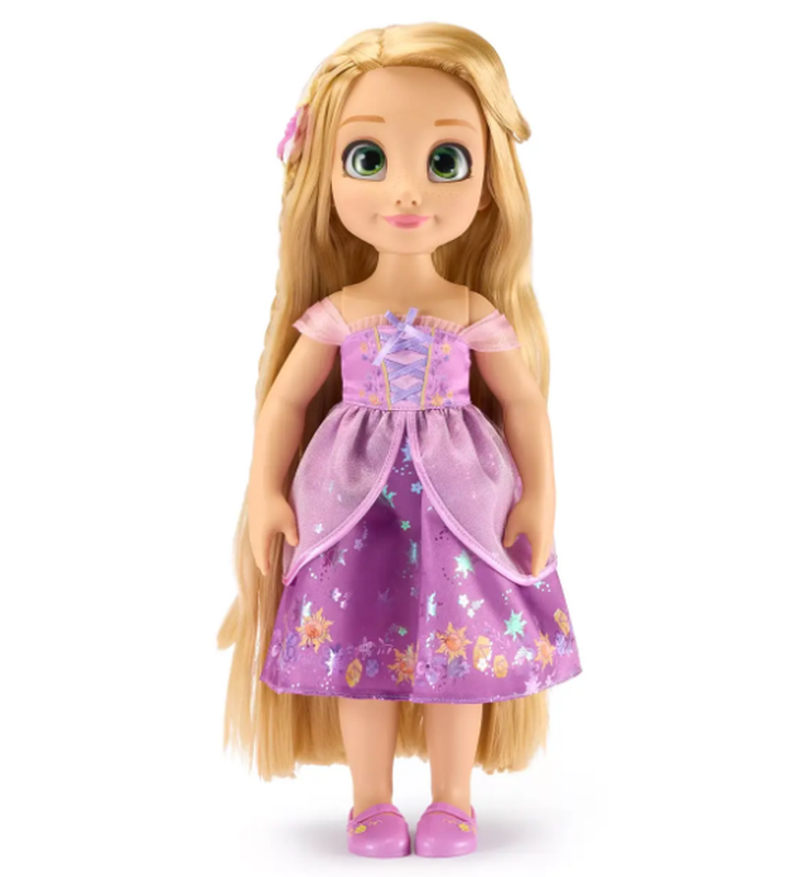 Колекція Disney «Одного разу в історії» оспівує силу уяви та розповіді історій разом з улюбленими казковими друзями. Рапунцель з диснеївської «Заплутаної історії» оживає як яскравоока дівчинка, яка прагне того дня, коли життя почнеться за межами її кімнати у вежі. Вона одягнена в мерехтливий костюм з атласними стрічками та квітковим філігранним оздобленням та має довге золоте волосся. - Атласний ліф та спідниця з квітковим філігранним принтом. - Атласні корсетні зав'язки. - Прозорі, мерехтливі рукави з органзи та зібрана баска. - Плісований виріз горловини. - Туфельки з квітами. - Квіткове оздоблення волосся. - Світловідбиваючі очі з 3D-зіницею та райдужкою ока. - Довге, ретельно укладене золотисте волосся з плетеними акцентами. - У комплекті ляльковий гребінець з барельєфною ручкою Паскаля. - Поставляється у відкритій коробці для демонстрації. Висота ляльки 40 см. Для дітей від 3-х років.