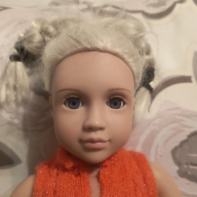 высота игрушки 45см ноги руки двигаются глазки при наклоне закрываются есть лёгкие малозаметные помарки на лице