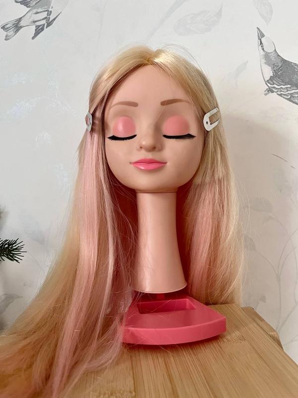 Чудовий ігровий набір для творчих дівчаток, які люблять експериментувати з зачісками. Гарна голова блондинки з мʼяким довгим волоссям. Якісна іграшка бренду JAKKS Pacific. Кріпиться до будь якої товщини поверхні з допомогою спеціального кріплення. В комплекті був ще гребінець і кілька заколок, але на жаль розгубилися, але сюди підійдуть будь які гребінці і аксесуари. В наявності є набір аксесуарів для волосся фірми Clementoni, ідеально підійде для цієї блондинки. Шукайте в моїх оголошеннях.