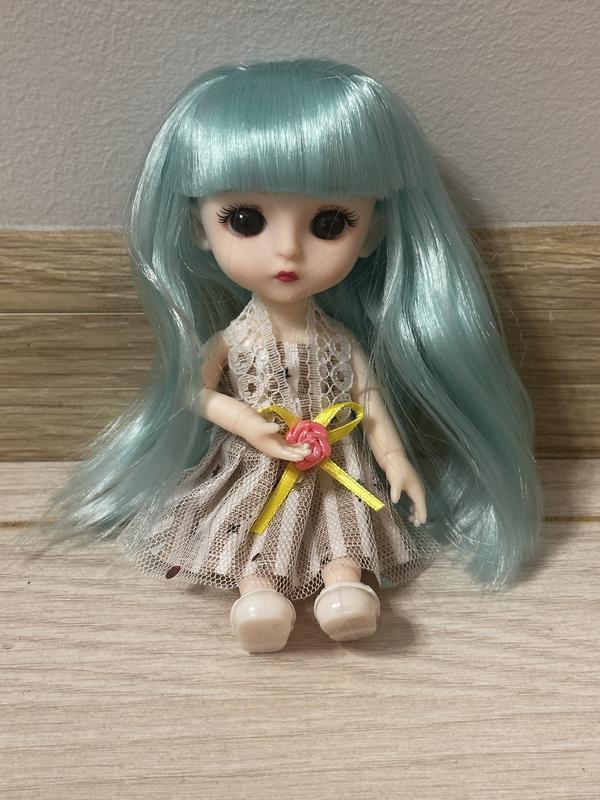 продається неймовірна шарнірна лялька з виразними очима та ніжним м'ятним волоссям. задяки шарнірам лялька дуже рухлива: вона може приймати різні пози, красиво сидіти та позувати для фото. у неї дуже густе та м'яке волосся, яке можна розчісувати, та деталізоване обличчя з довгими віями, що робить її вигляд дуже реалістичним одягнена у витончену мереживну сукню з квіткою та білі туфельки. висока якість виконання та приємні на дотик матеріали. така лялька стане ідеальним подарунком для дитини або прикрасою колекції, стан чудовий, як на фото