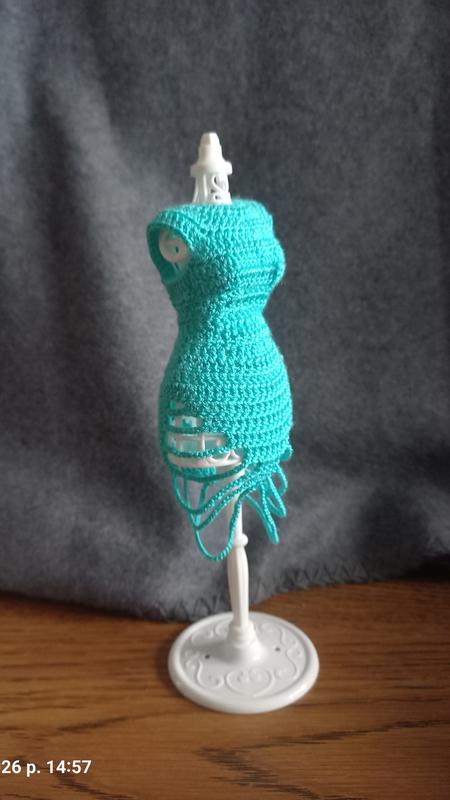 хэндмейд одежда для барби типа curves body's, для барби-пышки, вязаное крючком платье по фвгуре на кнопках. микрофибра, цвет мятный